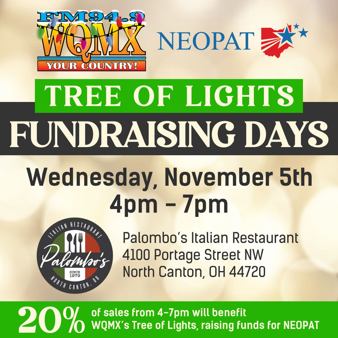 Palombo's Italian Restaurant 4100 Portage St., North Canton, OH, United StatesLet’s Eat for a Cause! NEOPAT is teaming up with 94.9 WQMX and Palombo's Italian Restaurant for Tree of Lights Fundraising Days! Enjoy a night out and know that a percentage of sales…