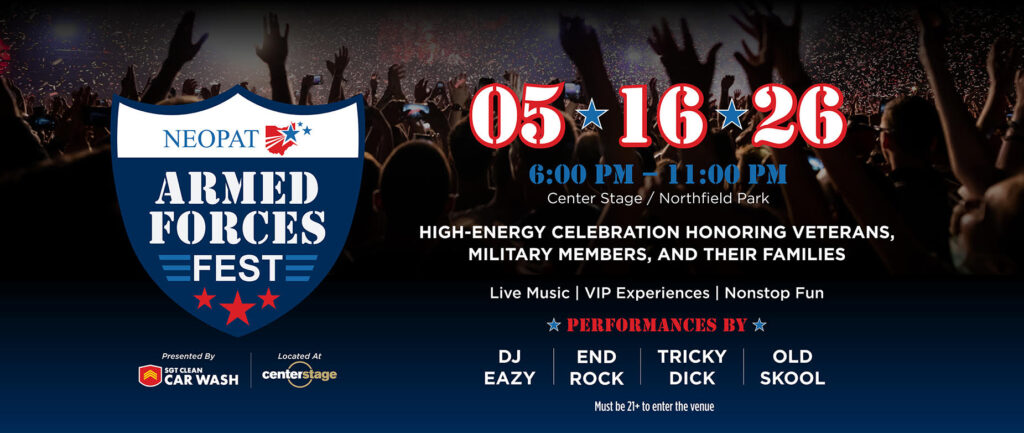 The inaugural Armed Forces Fest is set for May 16, 2026, from 6:00–11:00 PM at Center Stage at Northfield Park.